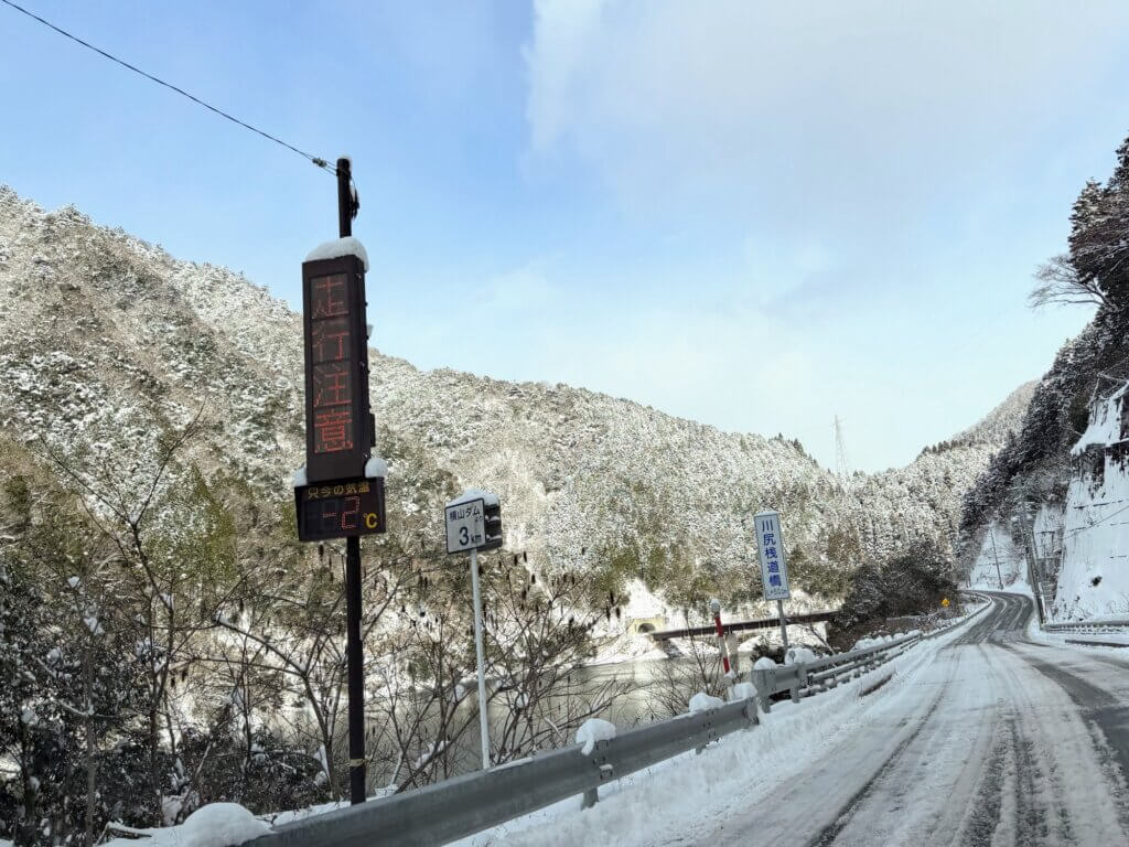 そしてこの日の朝。平野部は降るには降ったけどさほどでもない感じなので揖斐峡の方はどうだろうと見に行ってみることに。