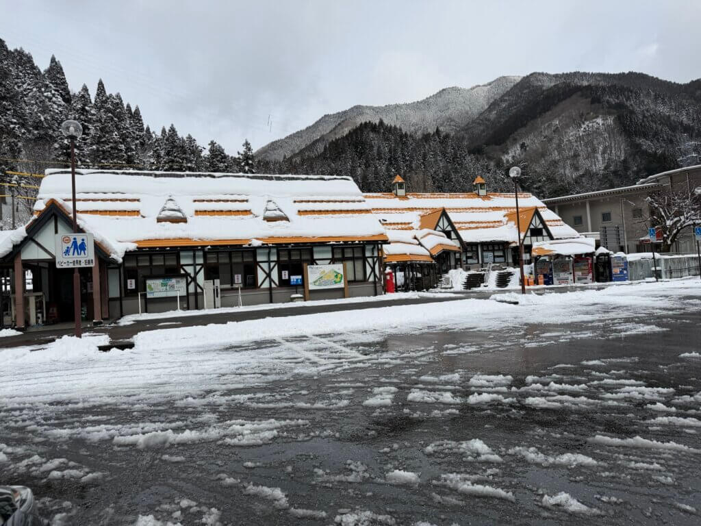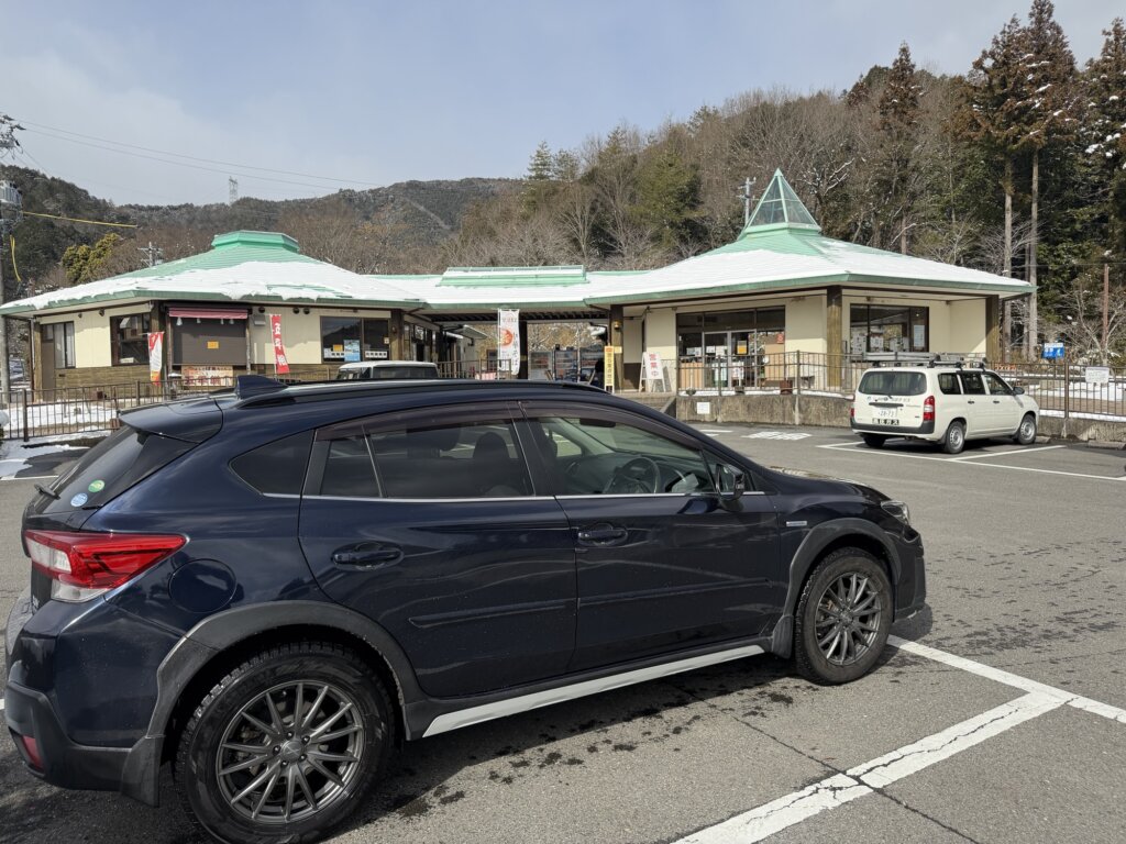 画像はいつもの道の駅星のふる里ふじはし。降雪は見られたがここまでは除雪もしっかりされてて路面のアスファルトもしっかり見れる感じ。AWDのスバルXVなので何の不安もなく来れました。