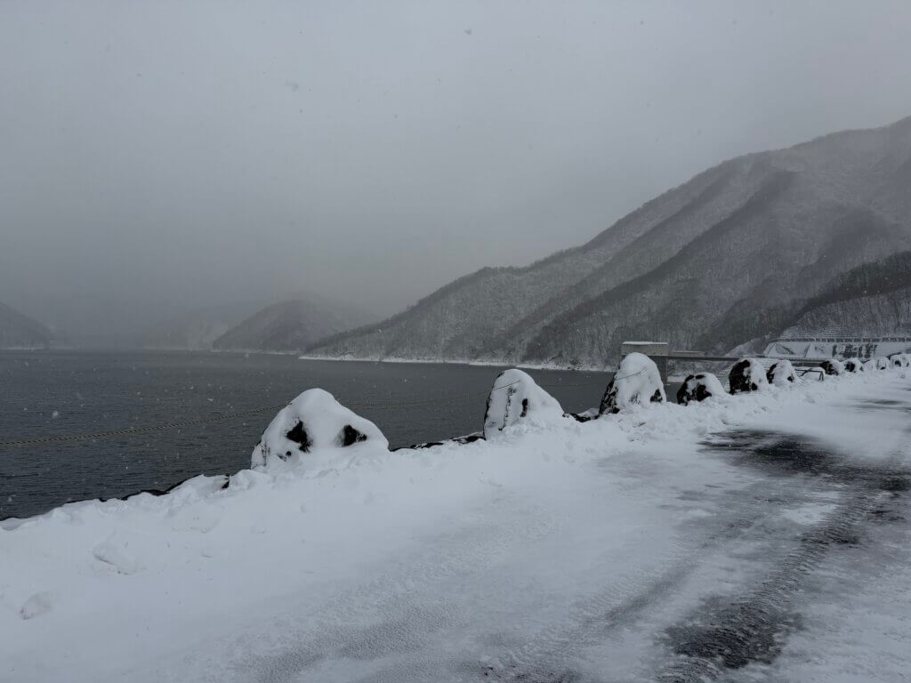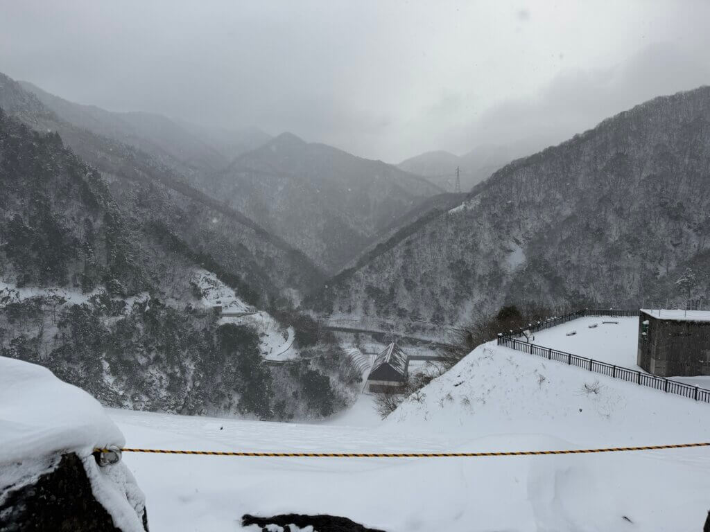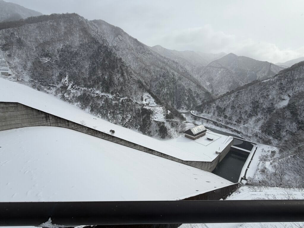 徳山ダムに到着。積雪は50㎝程でしょうか。