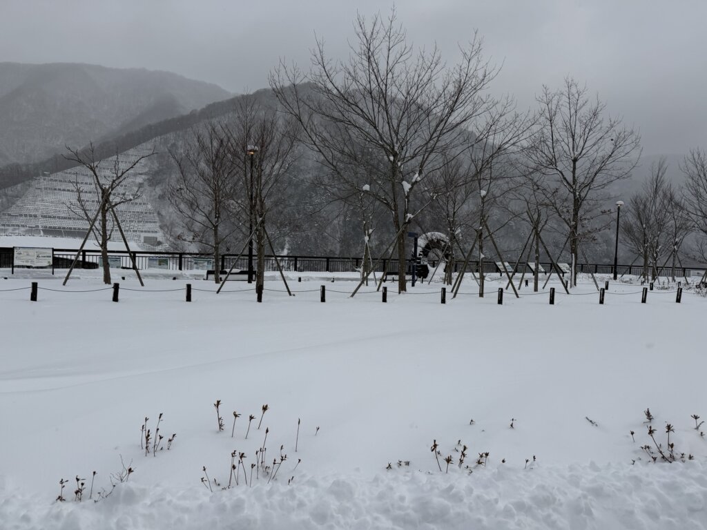除雪はされてるが、雪でアスファルトが見えないところもありました。