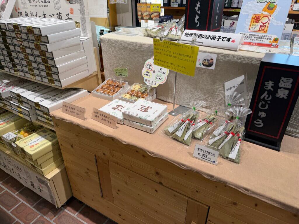 いろんな温泉饅頭が並んでましたが、店員さんおすすめの田島屋さんの温泉饅頭を購入。