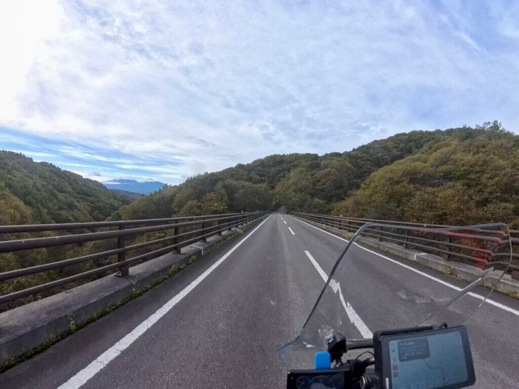 最初のうちは林間を縫って走る快走路。ここらは紅葉🍁にはまだ早いですが、朝早いので気持ちがいいです。